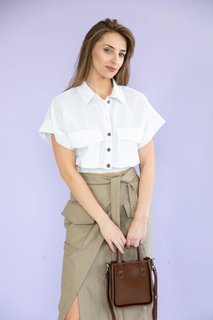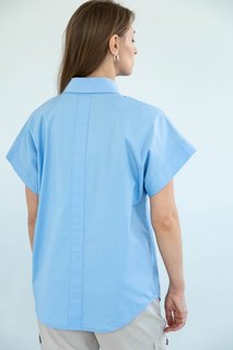 Женская рубашка прямого силуэта, умеренного объёма, со спущенной линией плеча, в вариантах исполнения А и В. Пройма оформлена манжетой....